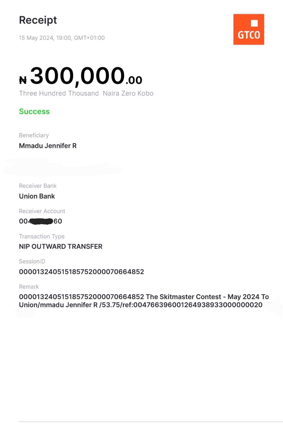 We say a big congratulations to Mmadu Jennifer for emerging as the 1st Runner Up of the The Skitmaster Contest - May 2024 [Completed]